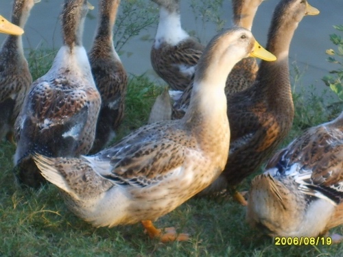 产蛋及繁殖性能:纯种淮南麻鸭在传统原粮、放牧饲养管理条件下,通常4月龄达性成熟,5月龄开始产蛋,每年春、秋两季为产蛋期,产蛋期7个月,全年产蛋135枚左右,其中春季产蛋占全年产蛋量的60-70%,平均蛋重63克。在全价配合饲料及专业饲养管理条件下性成熟与开产日龄提前15-20天,母鸭开产日龄在130—150日,全年产蛋期也延长一个多月,全年产蛋170—190枚,平均蛋重63克。母鸭就巢性差,孵化以人工孵化或电机孵化为主。传统饲养管理条件下,种蛋平均受精率88.00%;专业饲养条件下,种蛋的受精率为90%—95%。受精蛋孵化率为90%—97%,健雏率达96%,专业养殖场育雏、育成成活率分别能达95%和98%以上。